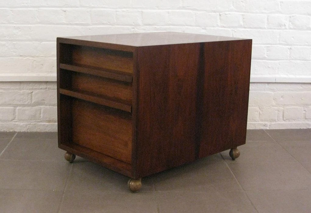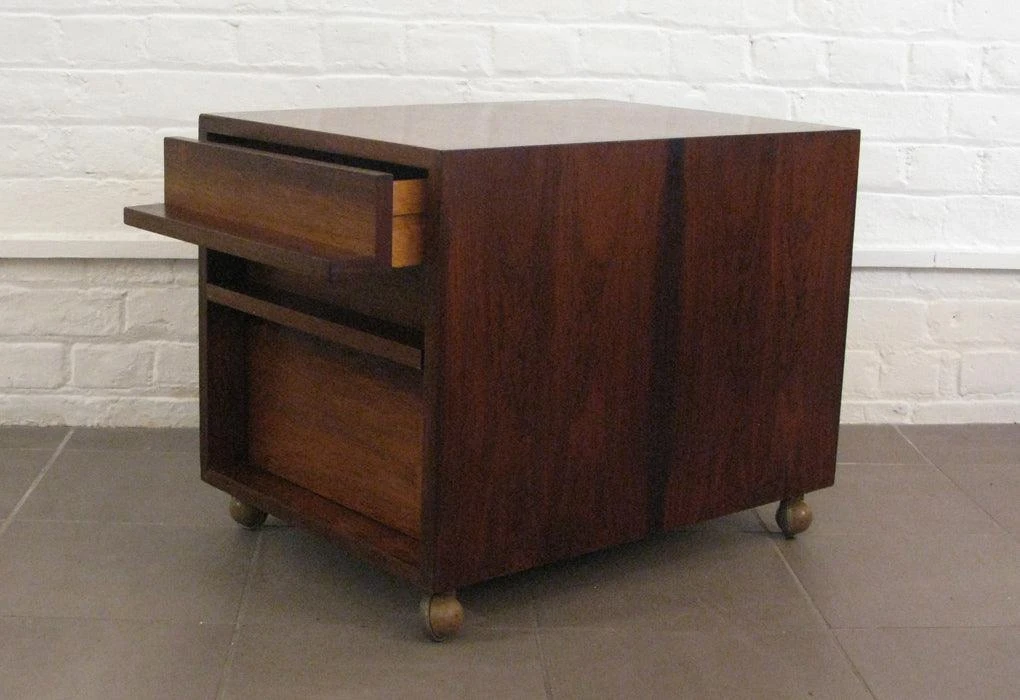 The drawer unit was designed alongside the seminal desk by Bodil Kjer. The desk and storage elements were produced by E. Pederson & Sons, Denmark through the 1960s and created some notoriety when featured in From Russia with Love and with celebrity owners including Michale Caine and Prine Phillip.
