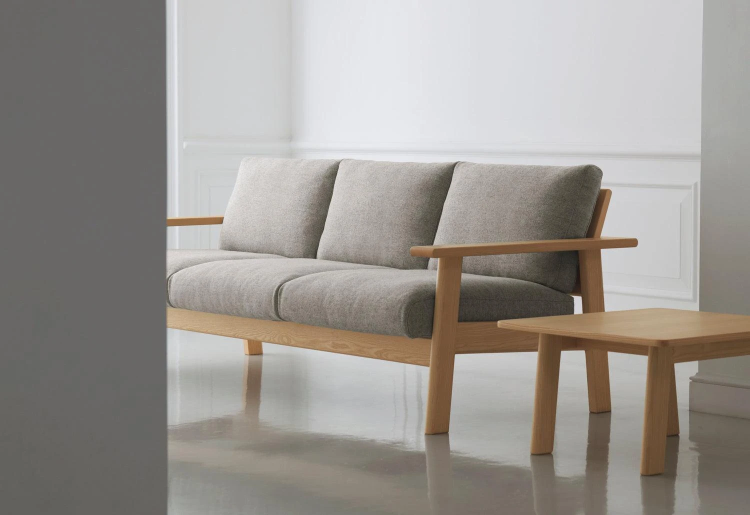 “The combination of selected fabric or leather with the ash or oak wood structures gives the sofa a visual freshness.” – Jasper Morrison.