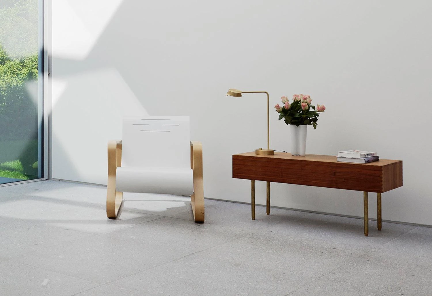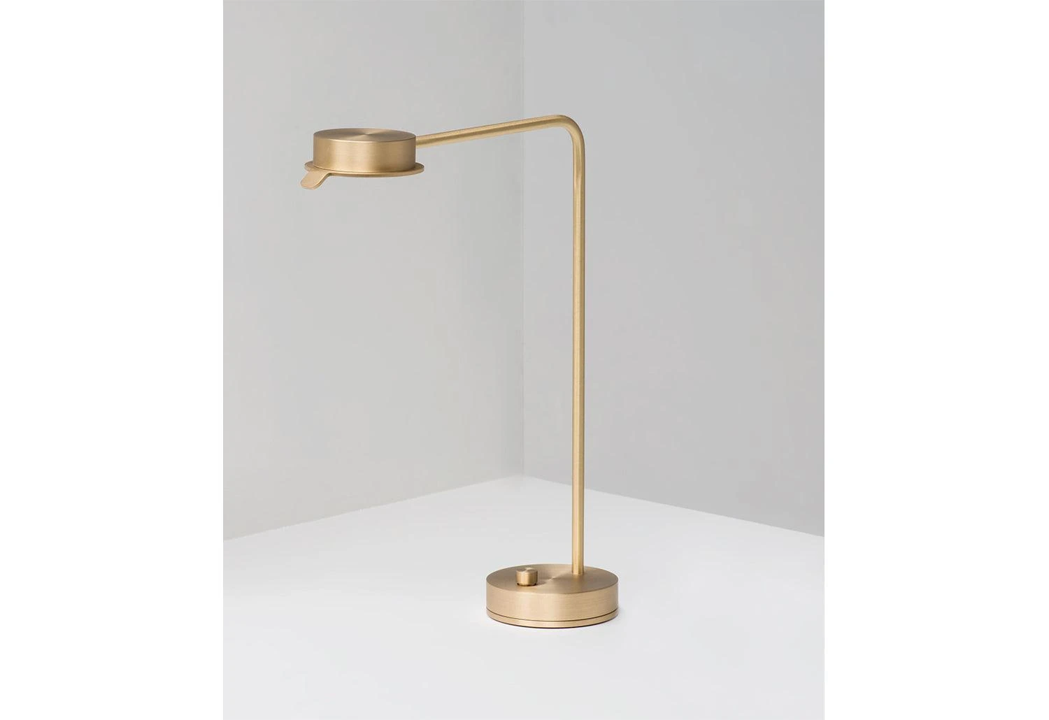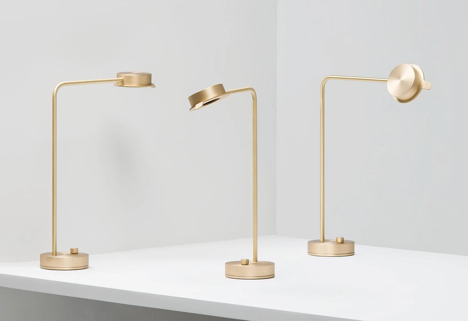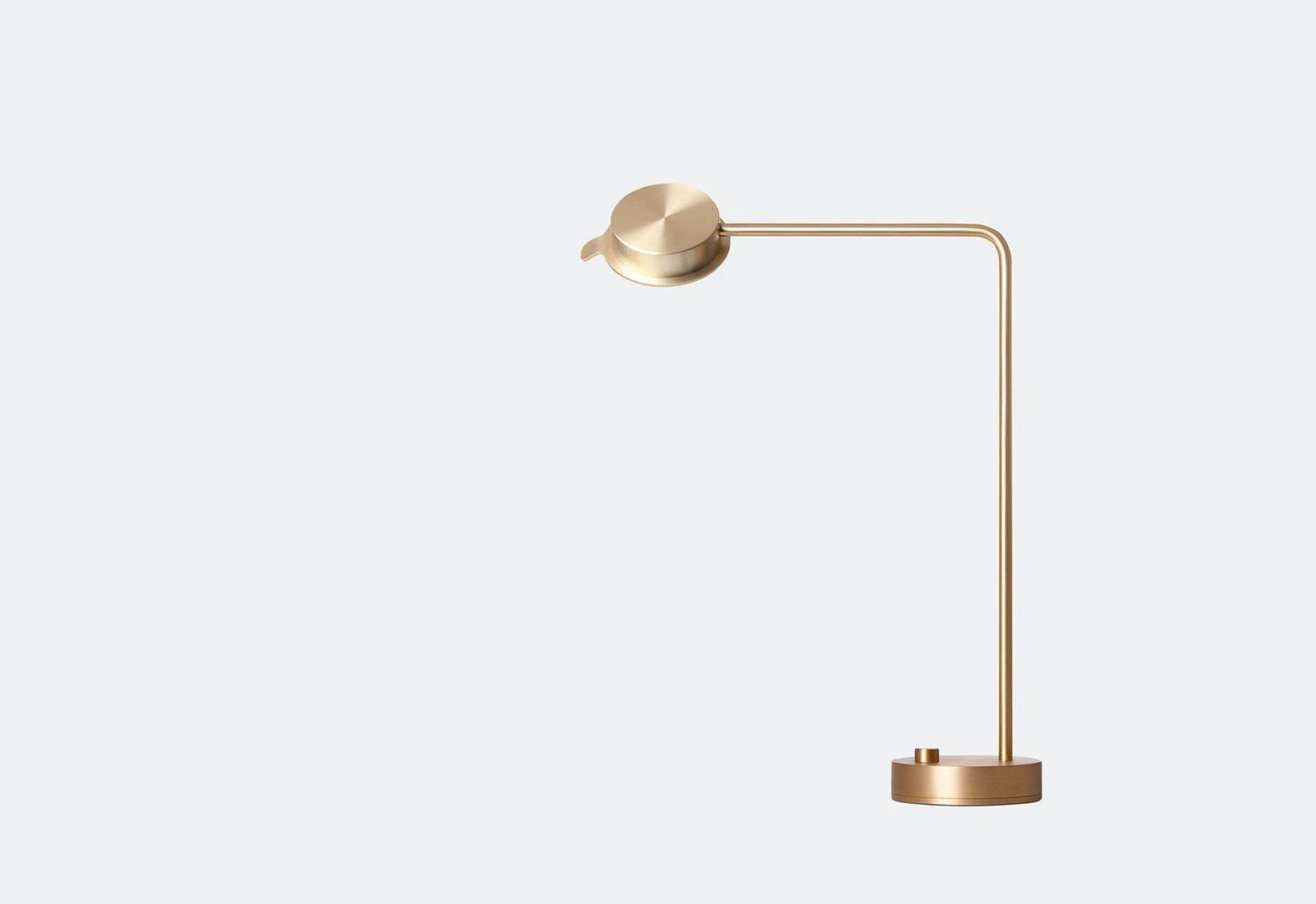 “The product references an archetypal personal desk lamp for home or office use, and seeks to offer a fresh interpretation of the familiar on a domestic scale. The lamp is predominantly made from brass – a material commonly associated with lights, though not so widely used today. The intention was to create a simple form with a clear distinction between a base, a single arm and a lamp head. The lamp has no visible joints and minimal directional movement, without compromising its function.”