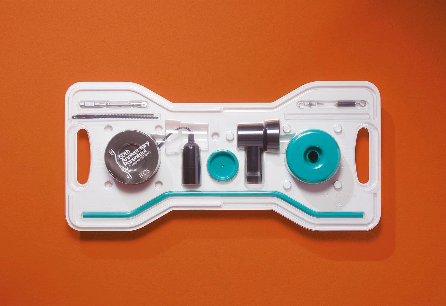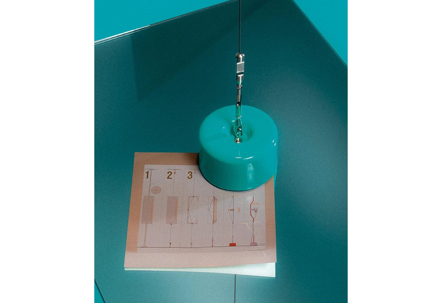 The colours introduced for the anniversary light were selected for their significance to the designers; turquoise, a colour Castiglioni frequently used in decorating, and Orange Signal, a colour that Manzù used for his design prototypes.