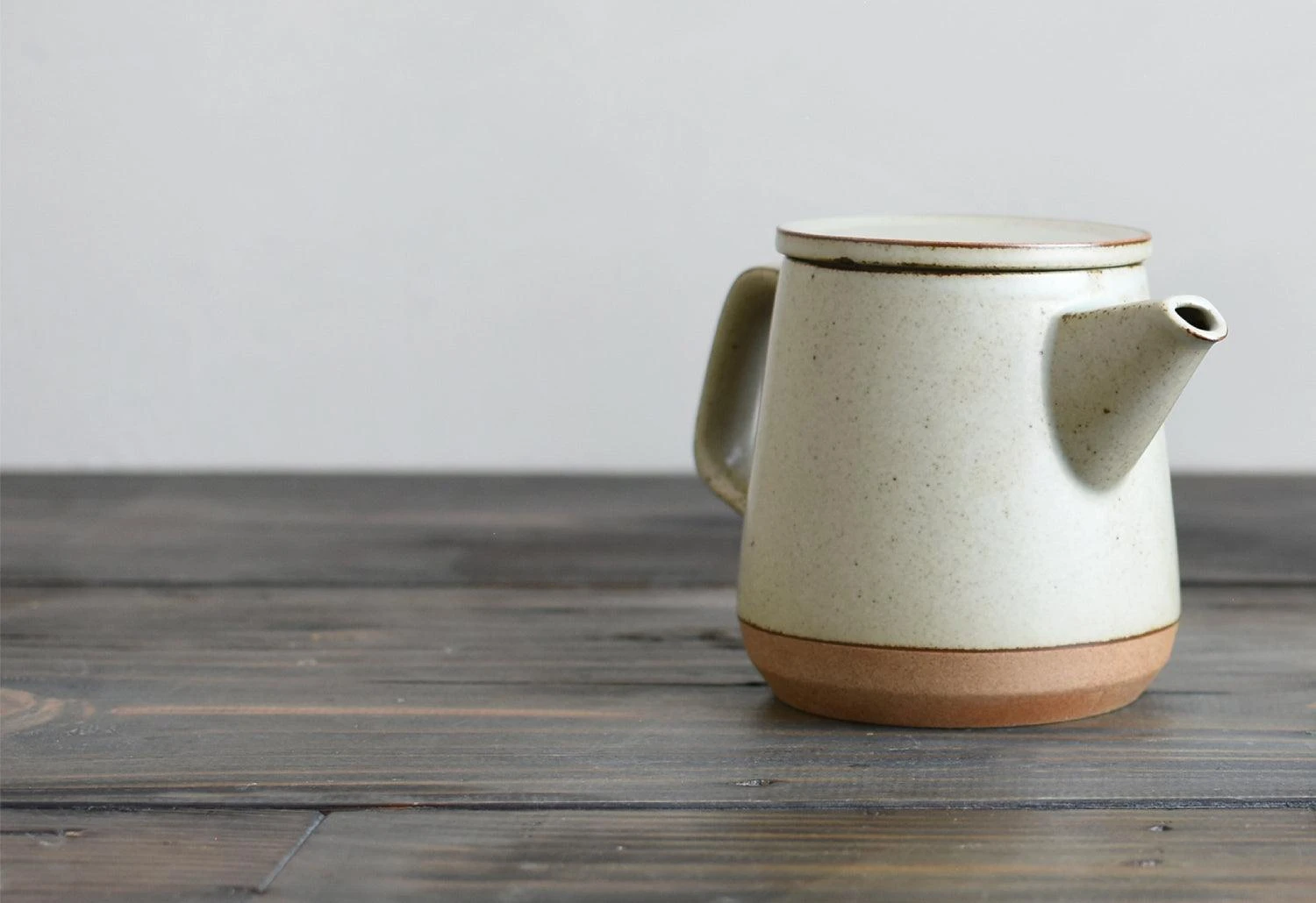 The CLK-151 has a warm and natural hue which brings a tasteful presence to the home. The porcelain teapot is expressed with these traits and by gentle curved forms and contrast of the geometric handle that is as pleasing to hold as it is to use.