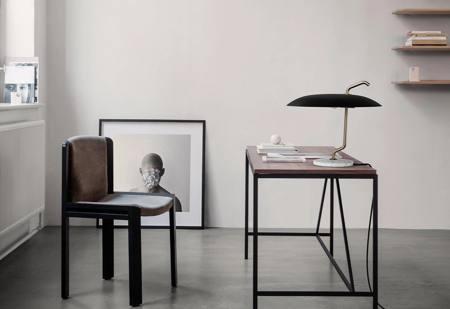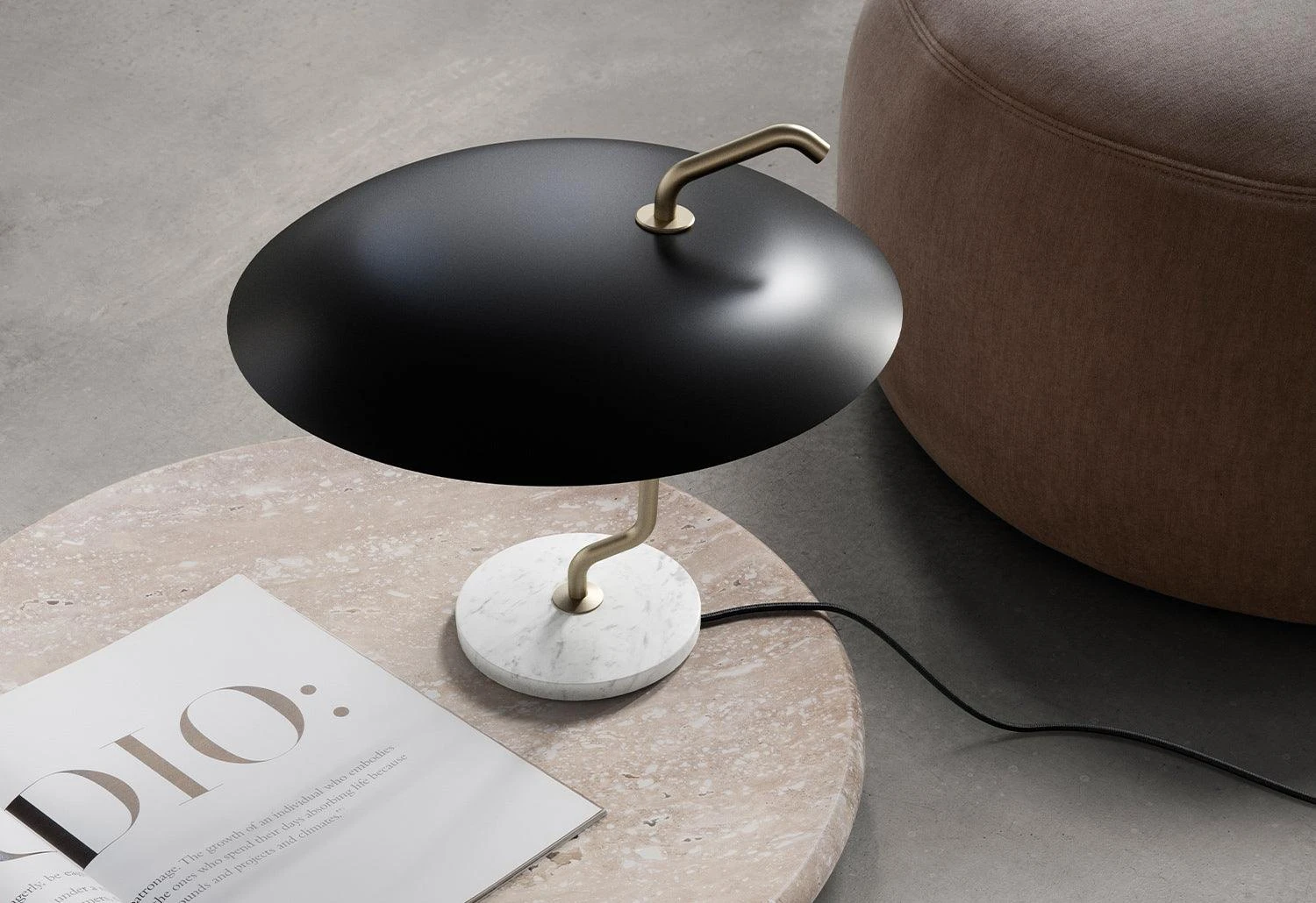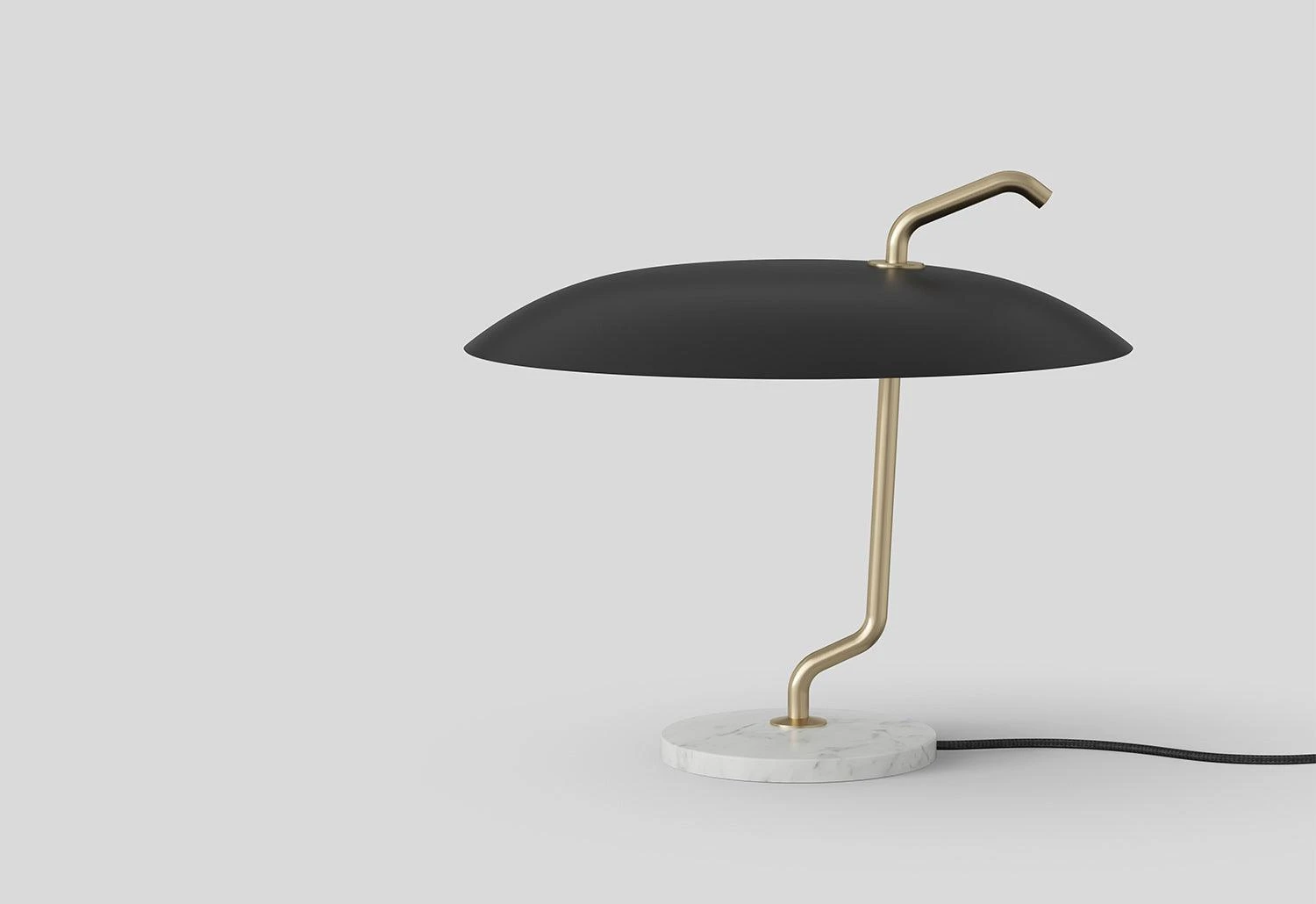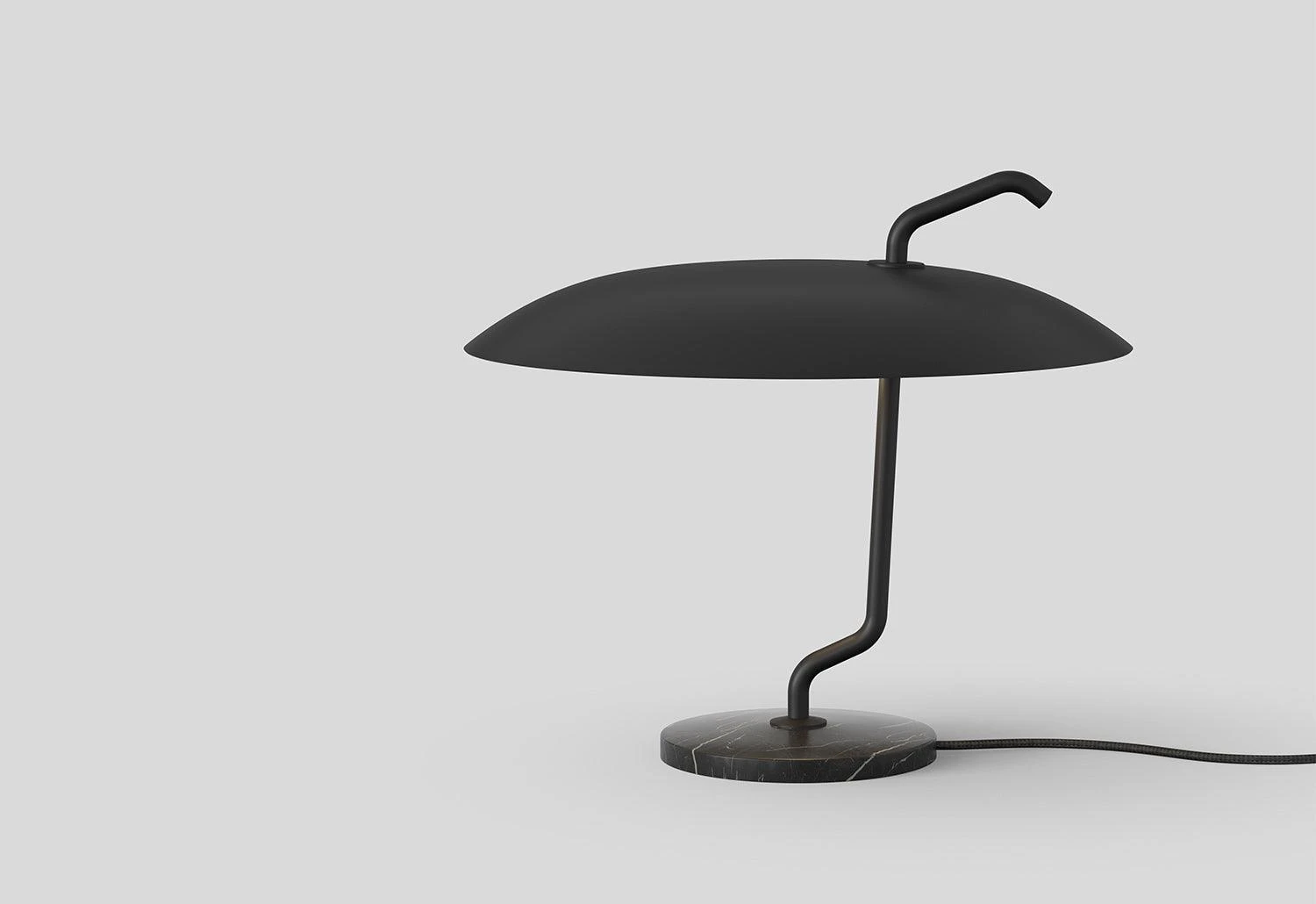 Model 537 table lamp is a perfect modern table lamp to create a cosy reading corner. The desk lamp from Astep is a result of the combination of playful, ingenious design and high-end material. The large aluminium reflector available in black or white finish carefully balances on a stem that sits on an elegant marble base. The stem protrudes through the reflector providing a playful look while serving as a practical handle.