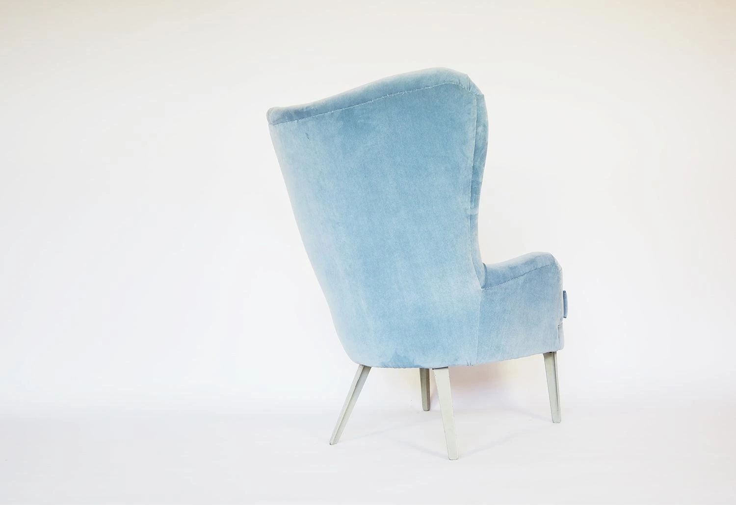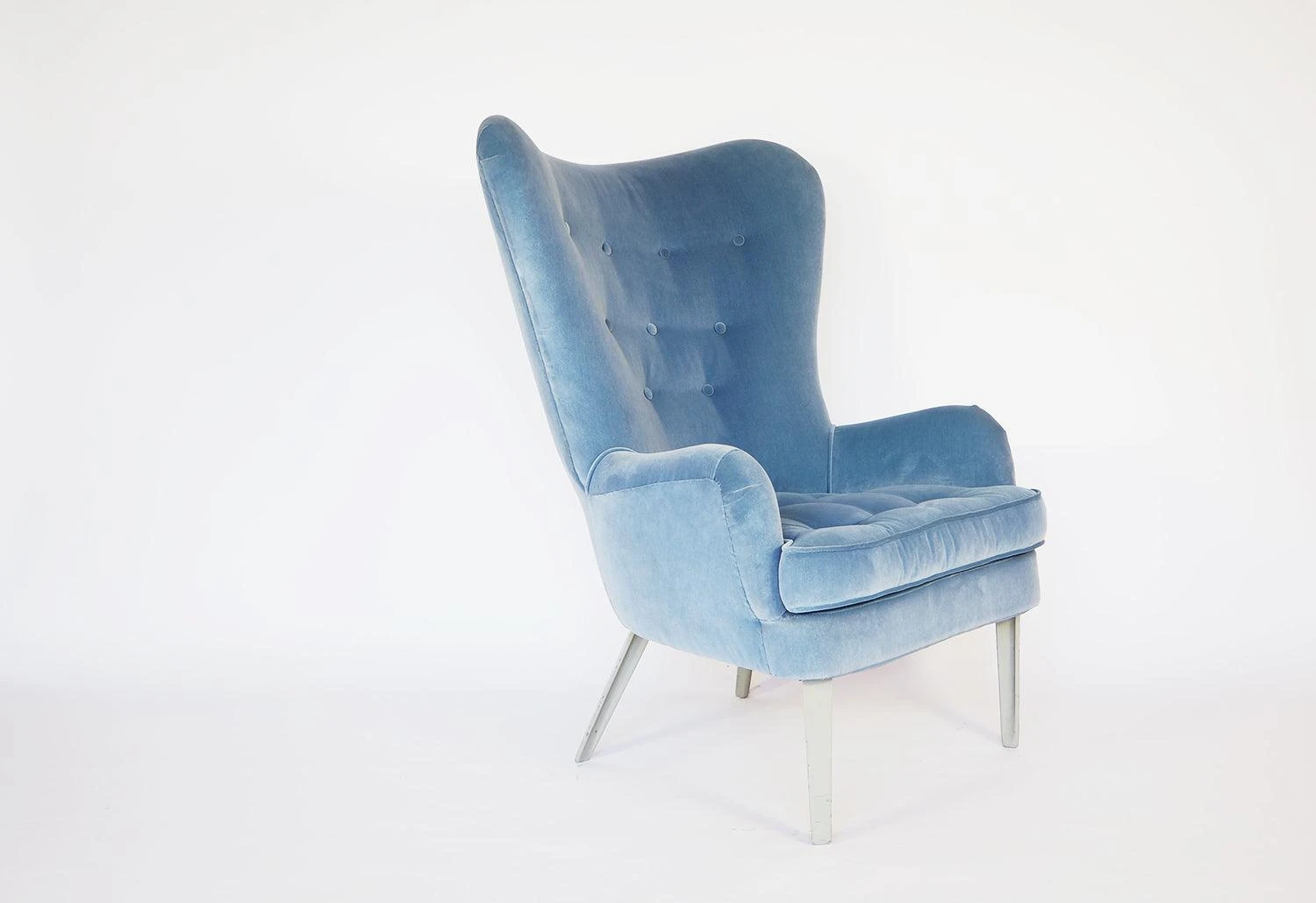 The innovative use of a steel-rod structure provided for sinuous and visually lightweight design, in contrast to bulkier traditional seating that relied on wooden internal frame-making. Whilst based on the shape of a classic wing chair the much more fluid outline was aesthetically progressive. The design of the DA series was in stark contrast with the bulky and heavy forms available in the mid-late 1940s.