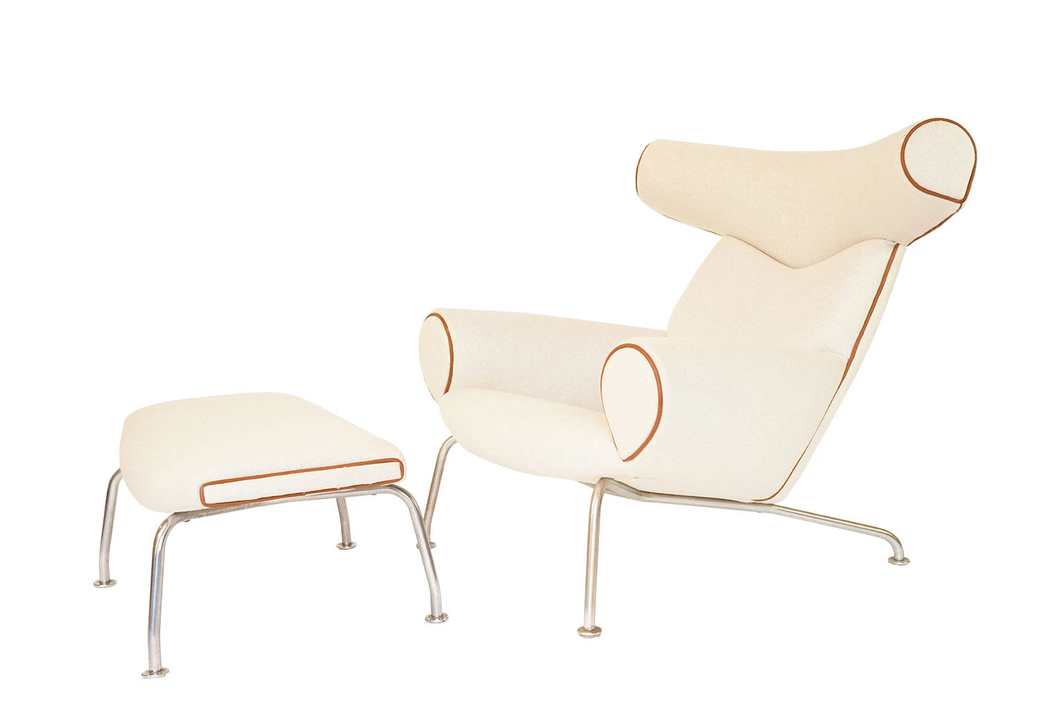 The Ox chair is considered to be Wegner’s most individual and expressive design. Citing the artistic influence of Picasso’s Toro, the bull’s horns are interpreted in a dramatic wing-back chair. The design was intended to be beautiful from all angles and the low-slung seat sits lightly upon a dynamic stainless steel frame. The chair offers extremely high levels of comfort and adaptable sitting positions.