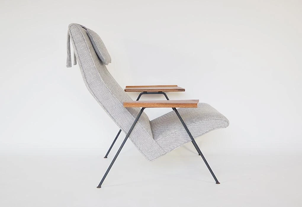 The Reclining chair was originally designed in 1952 and was considered by Robin Day to be one of his most successful and iconic designs. The high comfort levels and clearly articulated structure fulfilled Day’s exacting design sensibilities. The modernist vocabulary of the Reclining chair encapsulates principles that were inherent in much of his wide body of work.