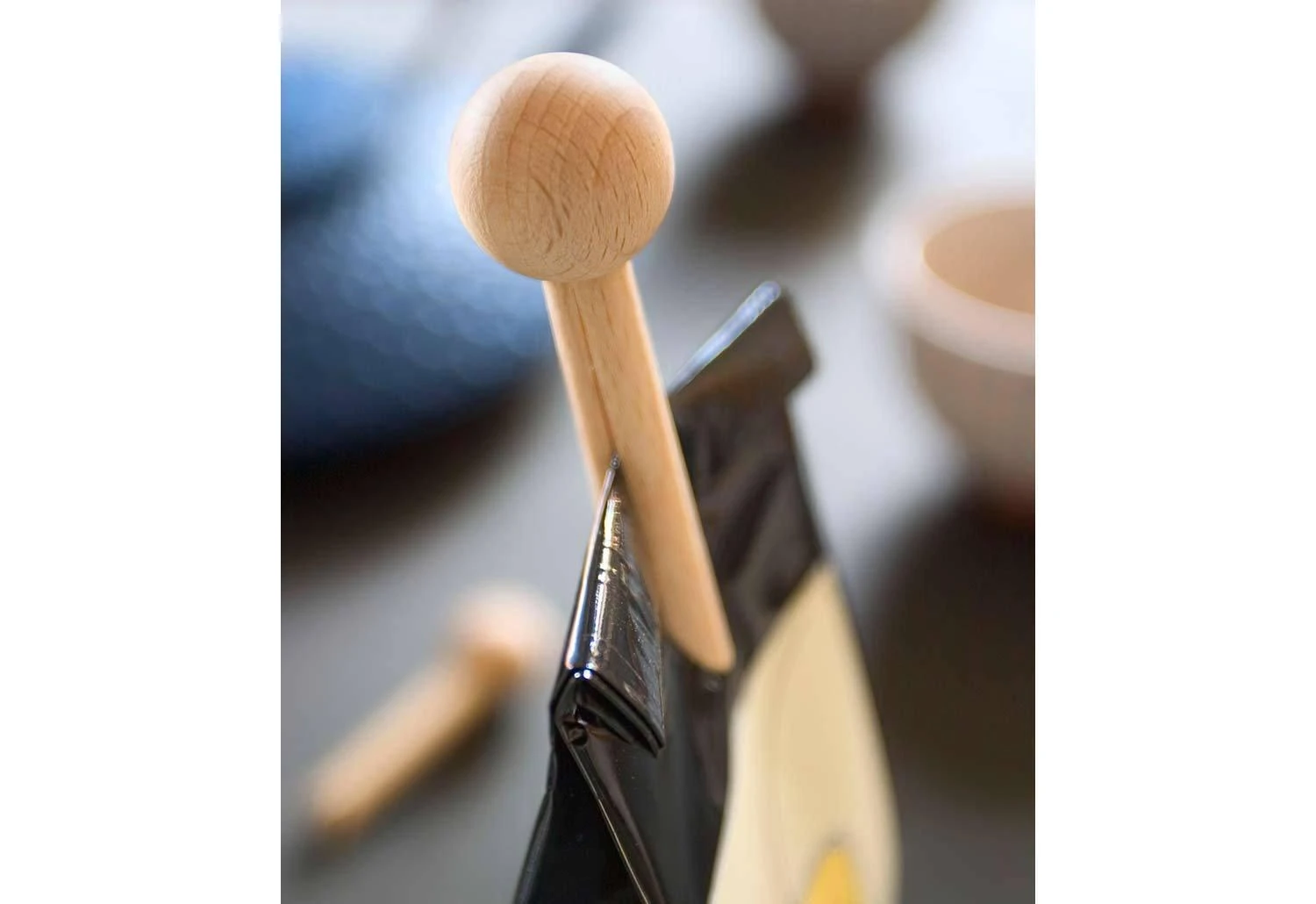 Set of three practical wooden bag clips. The Pinch bag clips are simple yet ingenious – a true kitchen essential.Â