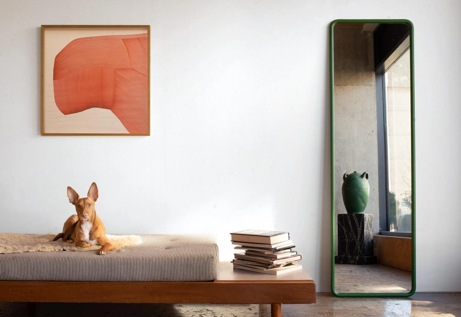The R40 mirrors may be hung in a traditional manner, flush with the wall, in landscape or portrait alignments.