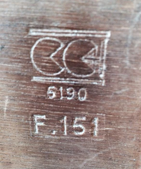 The cabinet is stamped with the Utility mark. Established in 1942, the Furniture Advisory Committee guided quality in design and use of resources. The use of mark ceased in 1952, thus indicating this cabinet is from the very first year of production.
