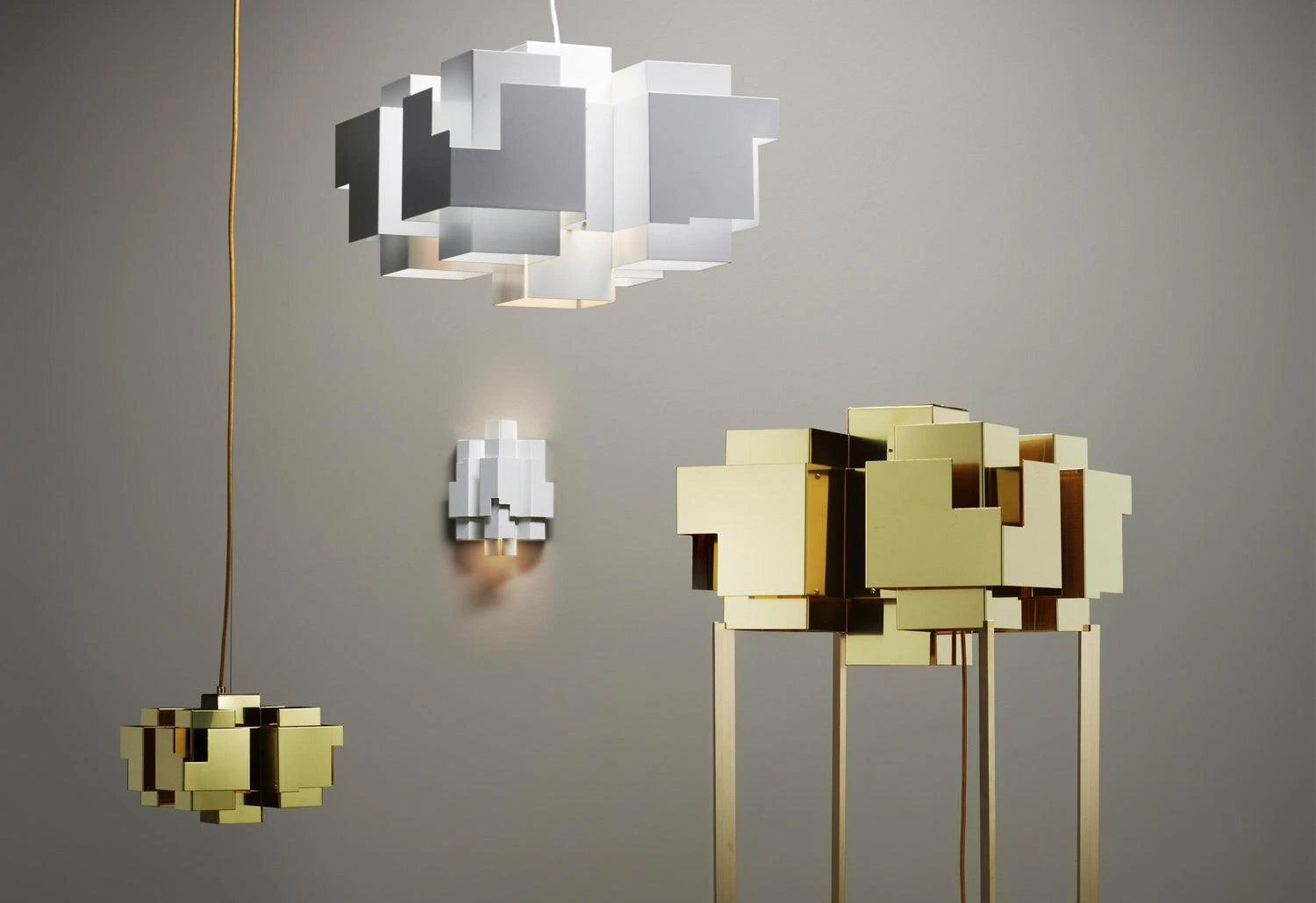 The Skyline floor light was launched at the 2014 Stockholm Furniture Fair. The design is based upon the blocky, concrete shapes of a Stockholm suburb.