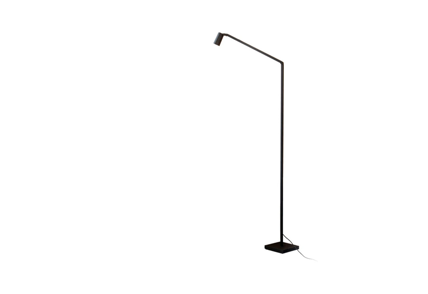 This lamp is suited to be placed by a sofa or armchair as a reading light. The structure of the lamp is created from extruded aluminium with joints for flexible positioning of the light and a dimmer on the stem of the lamp.