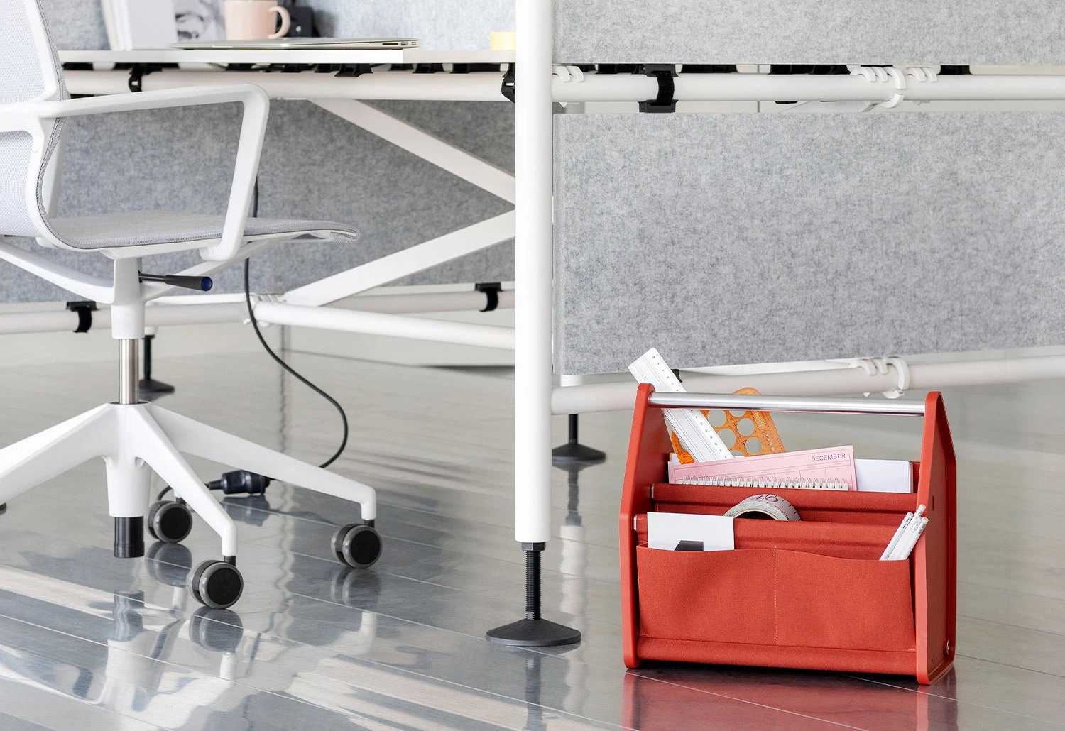 A great storage solution for flexible working, the Locker Box is a portable caddy that can hold everything required for work tasks. Carry your laptop, keyboard, papers, pens, cables, hard drives, headphones and any work accessories in this practical storage. It can be dismantled easily to be stored away.