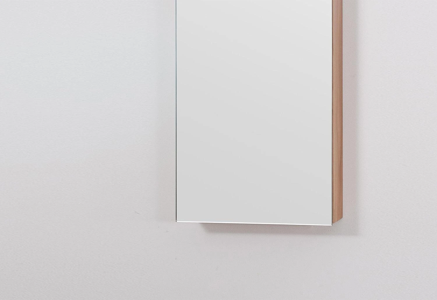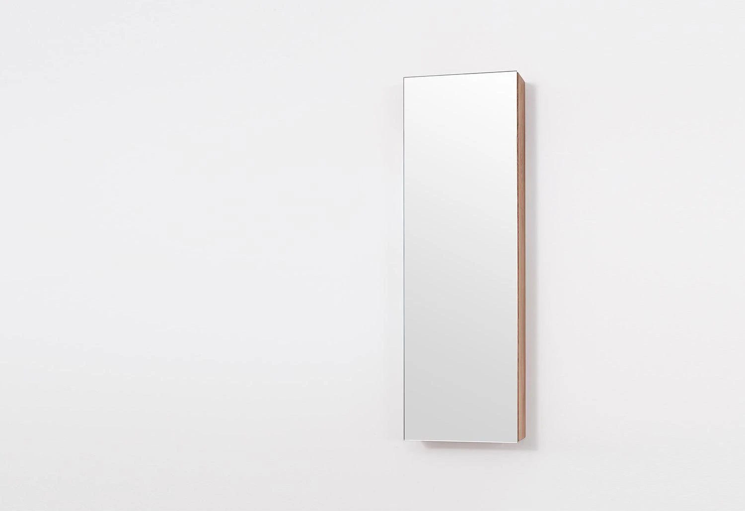 The slim and vertical Zone 800 cabinet from Wireworks is perfect for reclaiming corner and wall spaces where conventional cabinets don’t fit. The door features a polished edge mirror in the front with a circular mirror inside which provides five times magnification for great close up view. The extending hinges afford a wider door opening with easy access to the magnifying mirror inside.